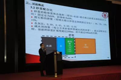广东工业大学特聘副教授李古以“掺抛光废石粉替代水泥浆体生产绿色砂浆的试验研究”为题对研究内容作介绍。从项目背景,试验概述,试验结果及分析,试验结论等方面介绍了掺抛光废石粉替代水泥浆体生产绿色砂浆的研究。